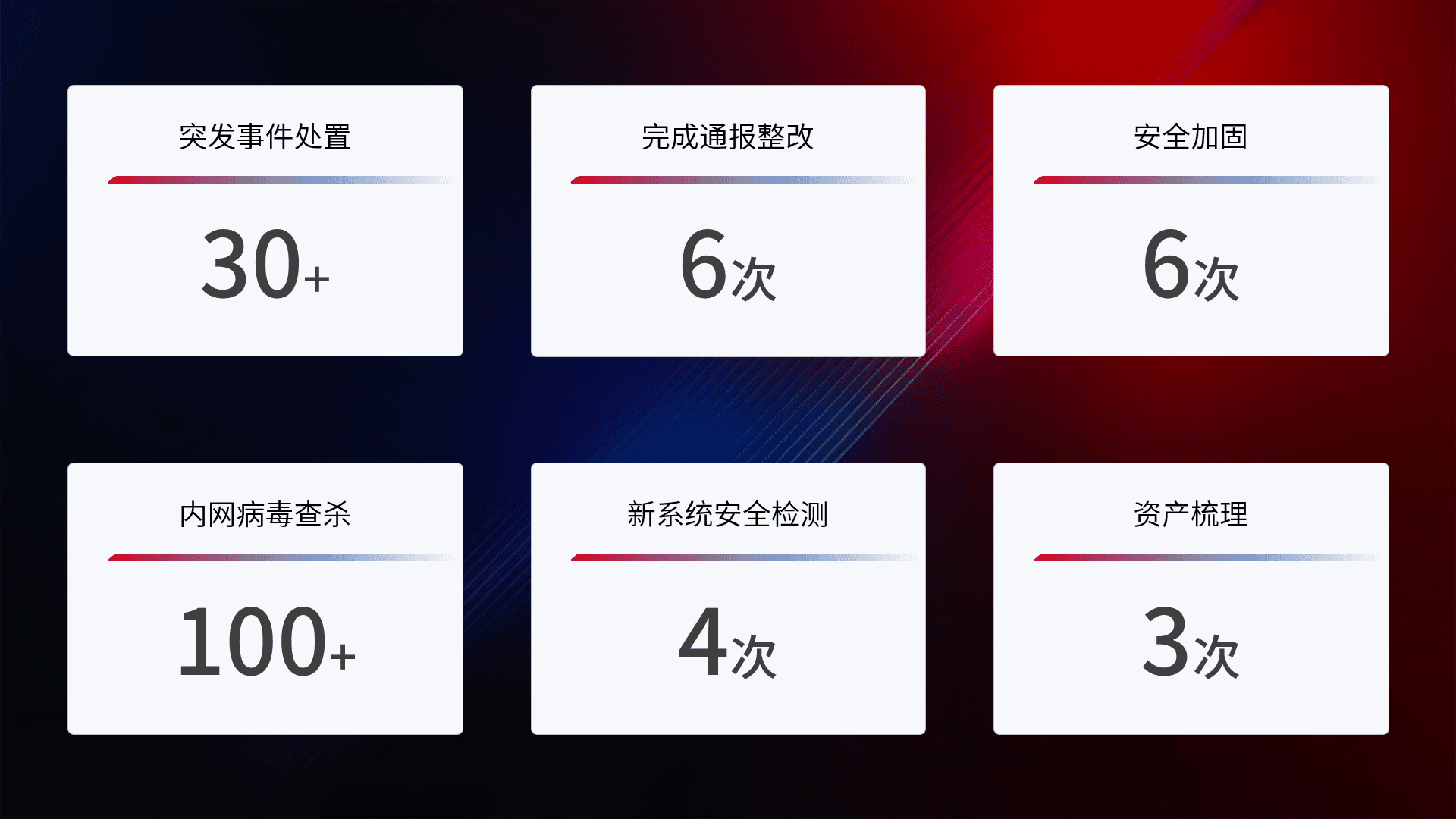 安全水平提升与事件响应:派驻经验丰富的安全工程师,,,提升医院网络安全防护的整体水平;建立突发网络安全事件的处置流程,,,提高响应速度和处置能力。。。