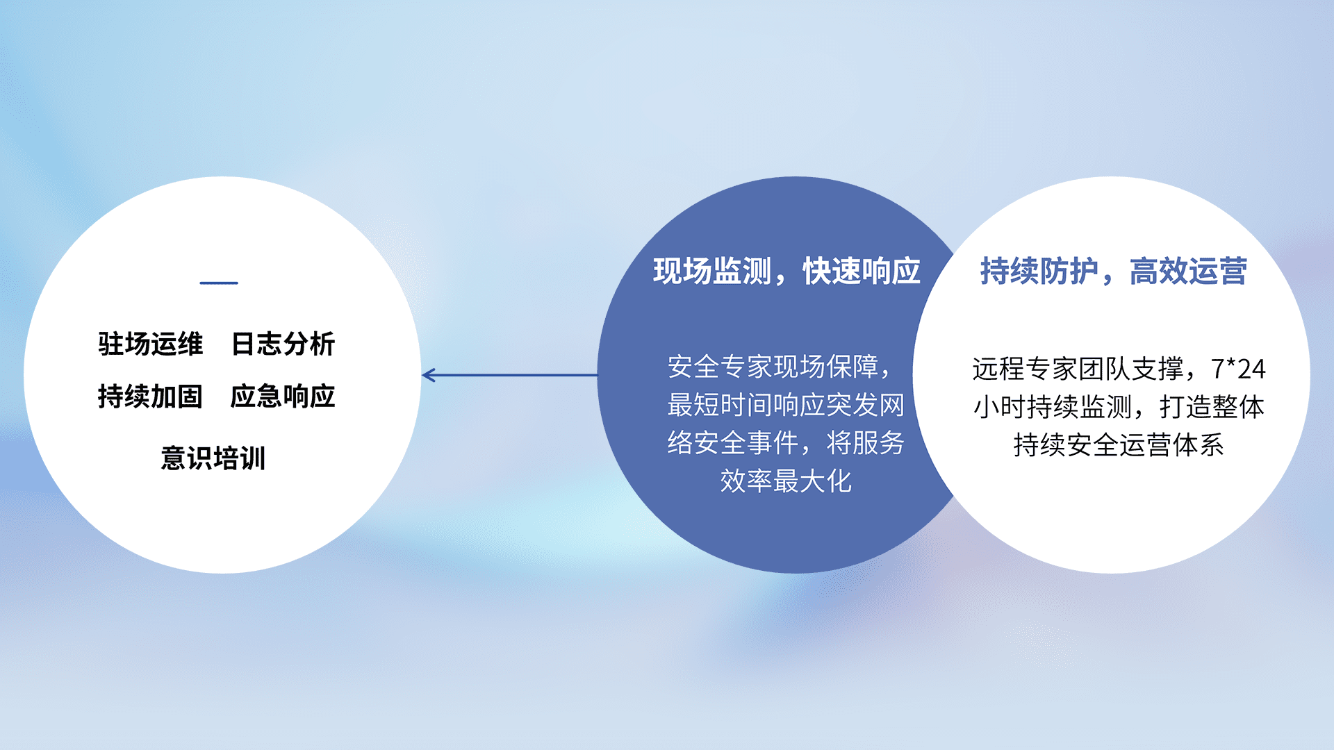 7X24小时持续监测安全事件,保持安全策略有效性,降低资产脆弱性风险,,精准拦截黑客攻击,,减少被黑客利用的机会,,,,第一时间遏制,,,降低损失。。。。